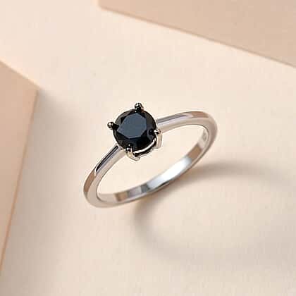 Close Out- Natural Black Diamond Solitaire Ring in Platinum Overlay Sterling Silver, 1.00 Ct.