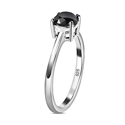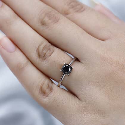 - Sterling silver solitaire ring set with a sparkling black diamond.