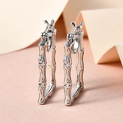 Platinum Overlay Sterling Silver Square Hoop Earrings (With Clasp)
