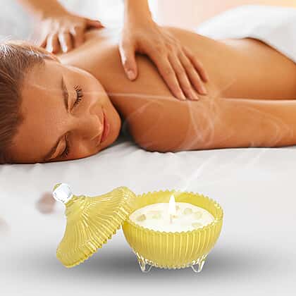 The 5th Season - Stripes Crown Glass Cups Candle with Citrine and Glass Lid - Yellow