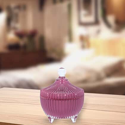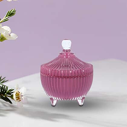 The 5th Season - Stripes Crown Glass Cups Candle with Amethyst and Glass Lid - Purple