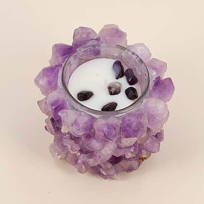 Close Out Deal - Amethyst Quartz Candle with Wooden Gift Box in Purple (Fragrance : French Vanilla)