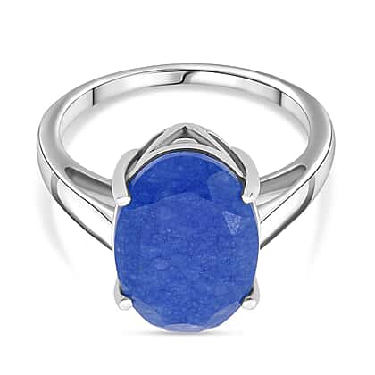 Close Out Deal - Blue Jade Ring in Rhodium Overlay Sterling Silver 5.15 Ct.