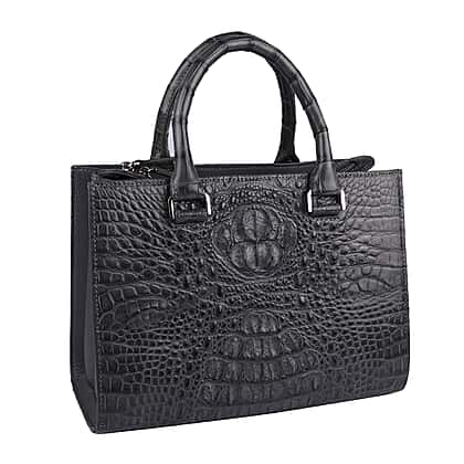 Close Out Deal - Exotic Crocodile Skin Tote Bag with Zipper Closure (26x20x12Cm) - Grey