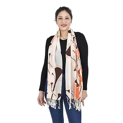 Close Out Deal - La Marey 100% Merino Wool Irregular Print Pattern Scarf (One Size 175x65 cm) - Beige