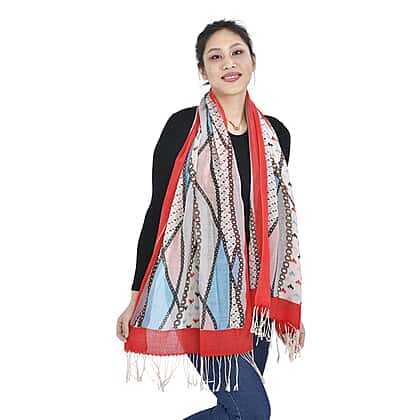 Drape yourself with this soft and stylish merino wool printed scarf by La Marey. This scarf features tassel detailing at the ends and bright, colourful prints to give it a unique touch. You can wear it around your neck or pair it with jeans, jackets or cardigans.