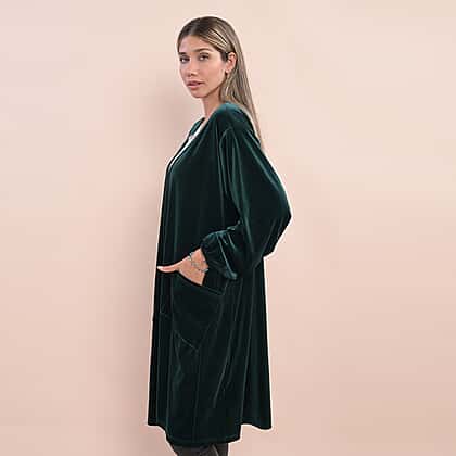 Close Out Deal - Stylish Long Velvet Cardigan (Size 95x55x70 Cm) - Green