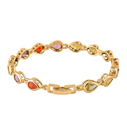 Multi Colour Cubic Zirconia Bracelet (Size - 7.25) Yellow Gold Tone
