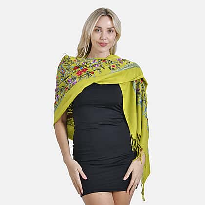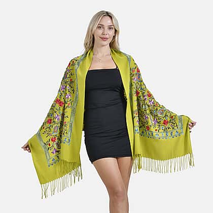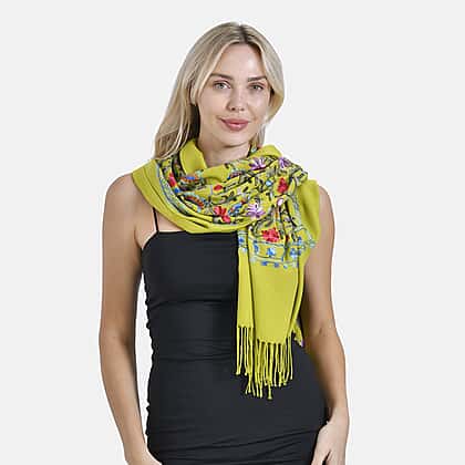 Close Out Embroidery Flower Pattern Super Soft Shawl (Size 180x70 cm) - Green