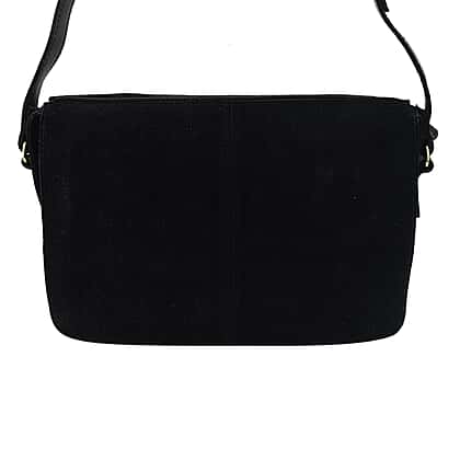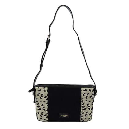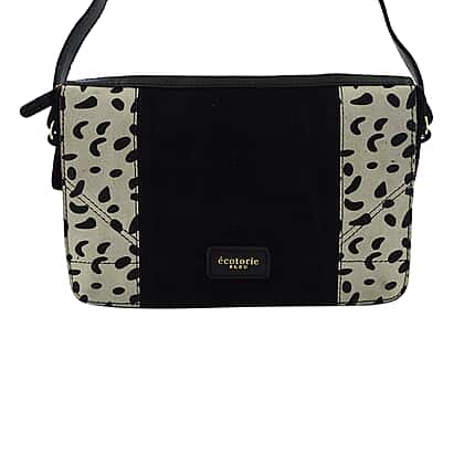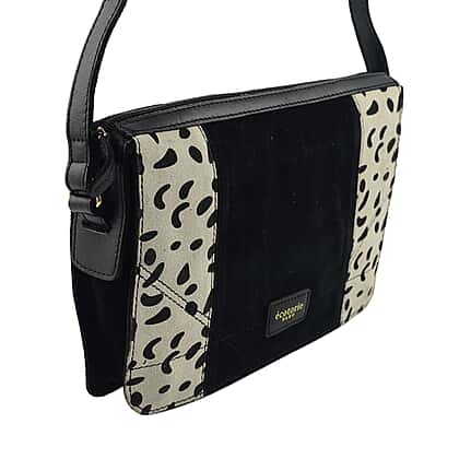 Closeout - Ecotorie Genuine Leather Leopard Printed Crossbody Bag With Shoulder Strap - Black