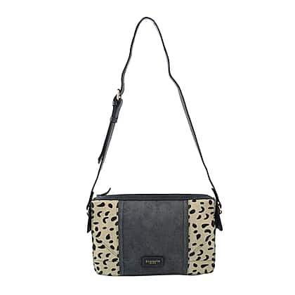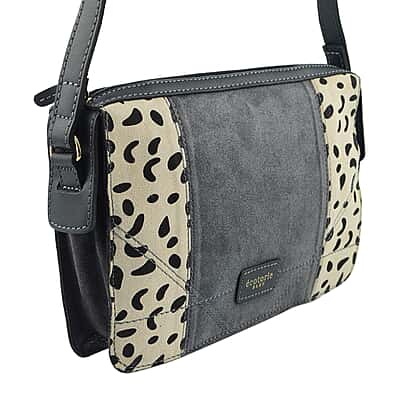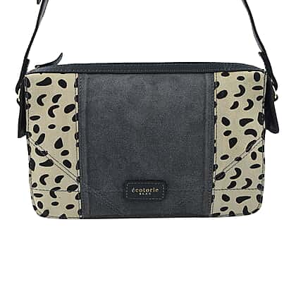 Closeout - Ecotorie Genuine Leather Leopard Printed Crossbody Bag With Shoulder Strap - Navy