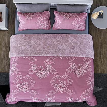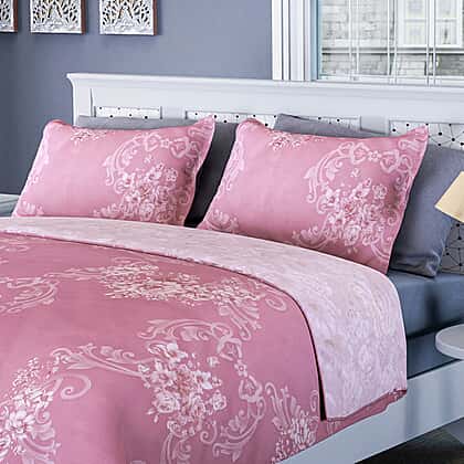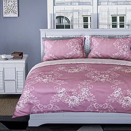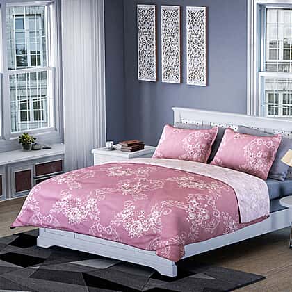 Closeout - Reversible Damask Printed Duvet Cover with 2 Pillowcases (Size 200x200 Cm) - Pink Double
