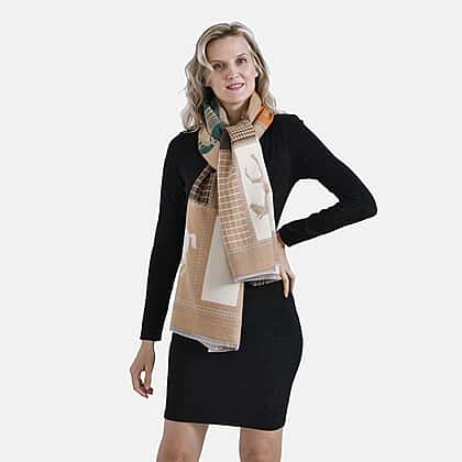 CLOSEOUT DEAL - Designer Luxurious Horse Print Warm Shawl - Camel