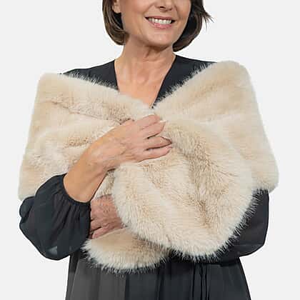 Closeout Deal - Faux Fur Wrap (Size 160x30 cm) - Beige