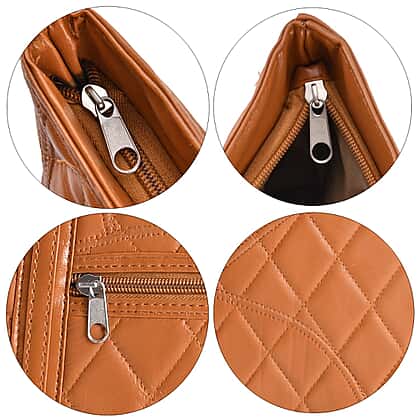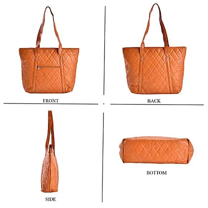 Enhance your everyday style with this patchwork sheep leather tote bag in a rich tan shade. Expertly crafted from high-quality genuine sheepskin leather, its quilted patchwork design adds a refined touch, making it a versatile choice for both casual and formal wear. Each leather piece is precisely cut and carefully stitched, ensuring exceptional craftsmanship. The spacious main compartment, secured with a sturdy zip, keeps your essentials organised and within easy reach. Made using recycled genuine leather, this bag is an eco-conscious fashion statement. Lightweight yet functional, it is the perfect blend of elegance and practicality for daily use.