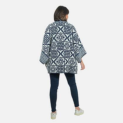 Closeout Deal - Oversized Longline Warm Knit Cardigan (Size 75x75cm) - Navy Blue