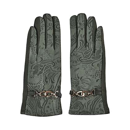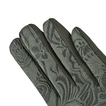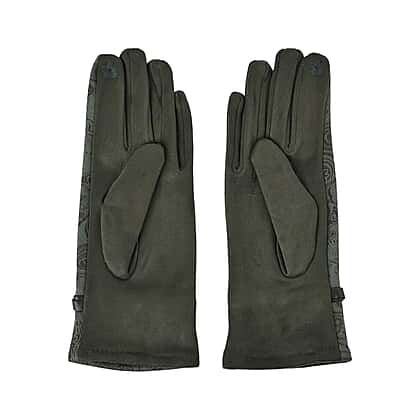 Closeout Deal - Printed Suede Screen Touch Winter Gloves - Green