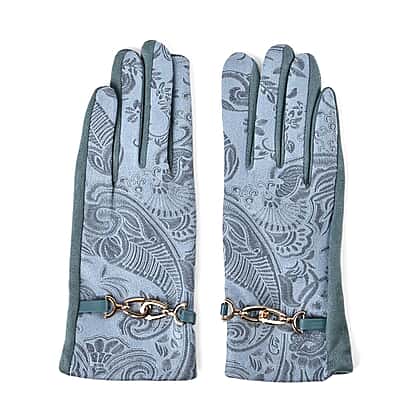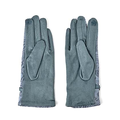 Closeout Deal - Printed Suede Screen Touch Winter Gloves - Teal