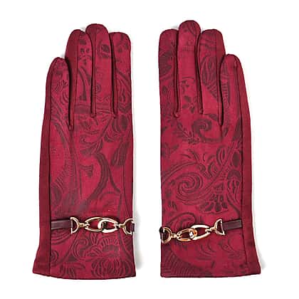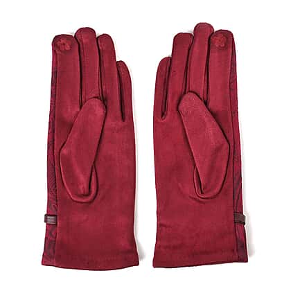 Closeout Deal - Printed suede Winter gloves, screen touch - Maroon