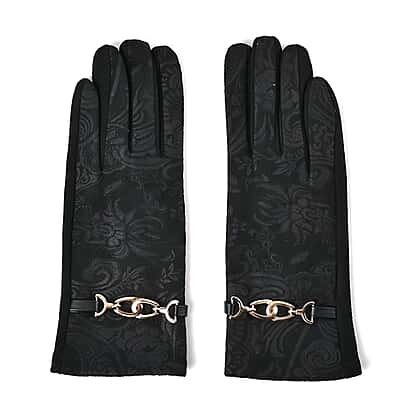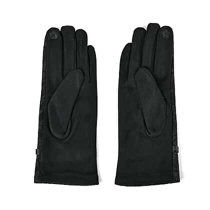 Closeout Deal - Printed suede Winter gloves, screen touch - Black