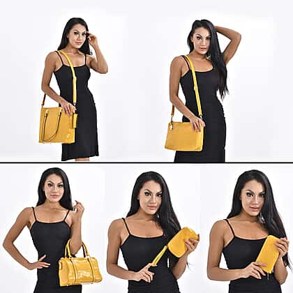 Closeout Deal - Set of 6 Croc Embossed Handbags- Mustard