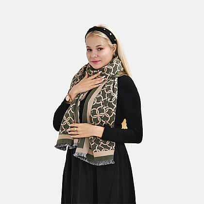 Closeout Deal - Super Soft Shawl with Circle Lattice Pattern (One Size,180x66 cm) - Green