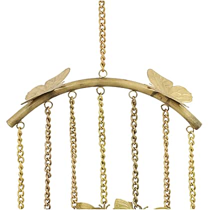 Experience the enchantment of our Butterflies Wind Chime with Miniature Bells. Delicate butterfly designs and bell strands adorn this captivating wind chime, adding charm to any outdoor space. The arch-shaped metal band and Brass Antique finish bring elegance and vintage appeal. Let the gentle breeze create a soothing symphony with the miniature bells, fostering tranquility in your surroundings. Crafted from durable iron, this wind chime ensures lasting beauty and joy. Embrace the whimsical allure and transform your outdoor oasis with the Butterflies Wind Chime with Miniature Bells.