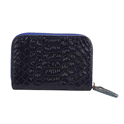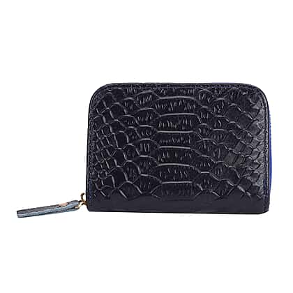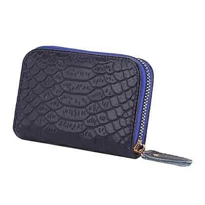 Closeout Deal Genuine Leather Snake Skin Embossed Wallet (Size 11x7 cm) - Navy