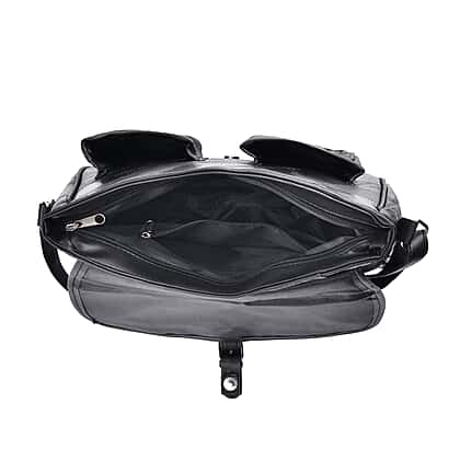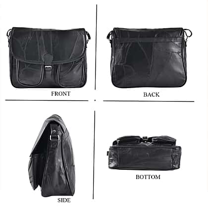 Closeout Deal Multi Pocket Genuine Leather Crossbody Bag - Black