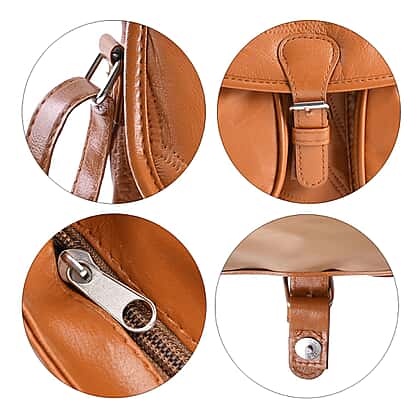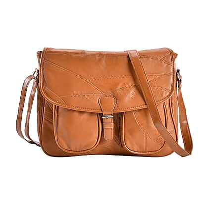 Closeout Deal Multi Pocket Genuine Leather Crossbody Bag - Tan