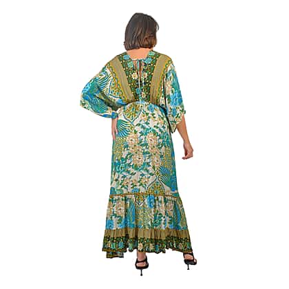 Closeout Deal Placement Printed Maxi Dress (One Size) - Green