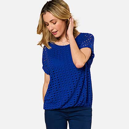 The Emreco Lace Jersey Knit Elastic Hem Top combines effortless style with everyday comfort. Featuring an open-knit lace design throughout, this top is perfect for adding a subtle touch of texture to your wardrobe. Its scoop neckline and short sleeves offer a relaxed, breezy fit, while the elastic hem ensures a flattering shape that gently hugs your waist. Whether worn on its own or layered, this versatile piece brings casual elegance to any outfit, making it an ideal choice for relaxed days and social occasions. Enjoy a comfortable, stylish look that’s easy to wear and care for.