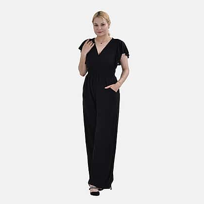Slip into effortless style with the La Marey Smocked Waist Stretch Jersey Jumpsuit. This jumpsuit is designed with a flutter sleeve and surplice neckline, bringing elegance and comfort to your wardrobe. The smocked waist adds a flattering touch, giving you a defined silhouette that feels as good as it looks. Crafted from a breathable blend of 97% polyester and 3% spandex, it offers the proper stretch for all-day wear. Whether heading to a casual day out or a formal event, this jumpsuit ensures you stay comfortable while looking stylish.
