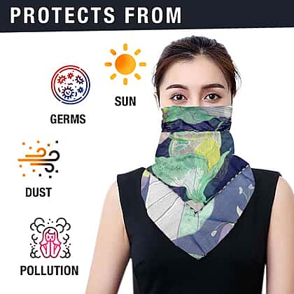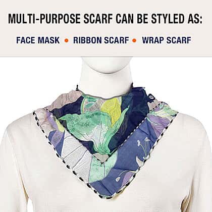 2 in 1 Flower Pattern Chiffon Soft Feel Scarf and Protective Face Mask (Size 45x45 Cm) - Blue