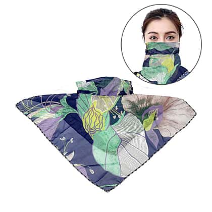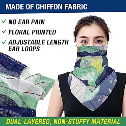 2 in 1 Flower Pattern Chiffon Soft Feel Scarf and Protective Face Cover in Blue