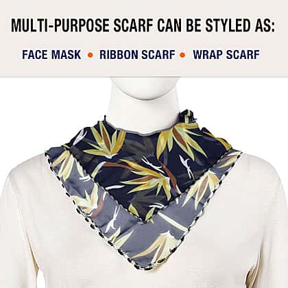 2 in 1 Flower Pattern Chiffon Soft Feel Scarf and Protective Face Mask (Size 45x45 Cm) - Navy