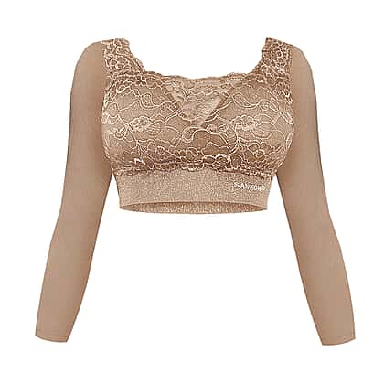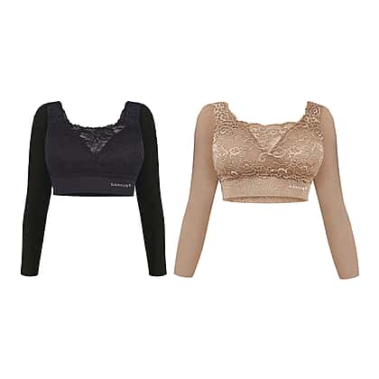 2 Piece Set- SANKOM SWITZERLAND Patent Classic Bra with Lace and Sleeves (Size S-M- 8-10 UK) Black and Beige