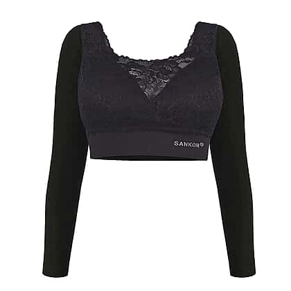 The revolutionary design of this bra by Sankom is patented because it combines aesthetics and health benefits. Not only does it offer full coverage and support, but also improves your posture, helps reduce back pain, and tense neck. It is designed to push the shoulders back, using the weight of the breasts, to help the wearer improve their body posture. A delicate lace pattern adds a sensual touch to the design.