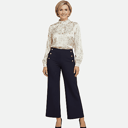 Anonymous Wide Leg Trouser With Gold Button (Size 14) - Navy