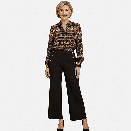 Anonymous Wide Leg Trouser With Gold Button (Size 20) - Black