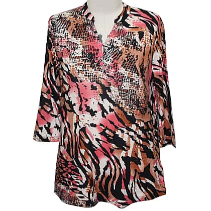 Aura Boutique Supersoft Neck Detail Printed Top in Brown