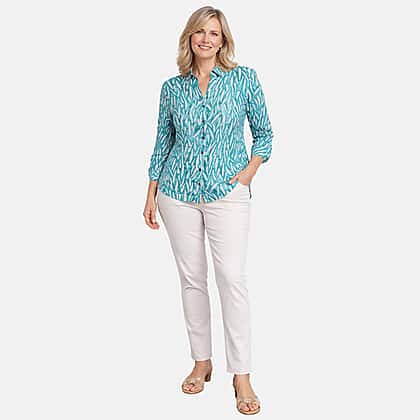 Charlotte West 100% Cotton Printed 3-4 Sleeve Blouse With Side Vent (Size 14) - Teal Blue