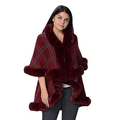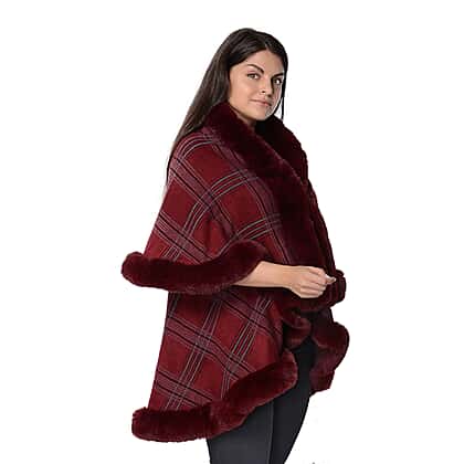 Checkered Pattern Faux FurTwo Layer Wrap (Size 79x99 Cm, 46x81 Cm) - Chk Wine