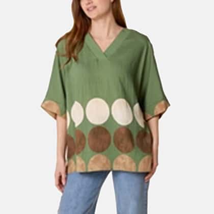 Chilli Charm V-Neck Polka Dot Print Top (One Size) - Khaki