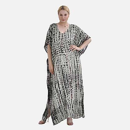 Step into effortless style with our V-neck tie-dye stripe pattern mid-sleeve dress. Crafted from 100% polyester, this dress offers a relaxed fit and bat sleeves for ultimate comfort and elegance. The eye-catching tie-dye stripe pattern adds a trendy touch, while the side slit provides ease of movement. Ideal for casual outings or relaxed weekends, this dress is your go-to for a stylish yet comfortable look. The soft, breathable fabric ensures you stay cool and stylish all day long. Perfect for expressing your unique style with a hint of boho charm.