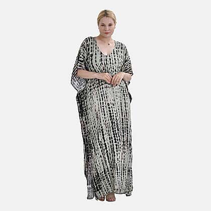 Closeout Deal 100% Viscose V-Neck Tie-Dye Stripe Pattern-Mid-Sleeve Dress (One Size) (8 TO 20) - Green - Brown