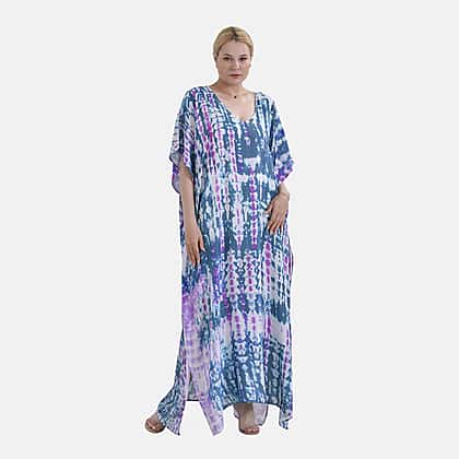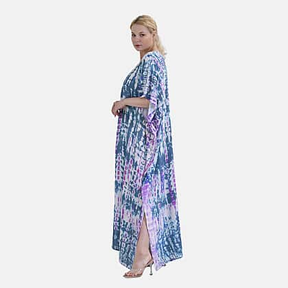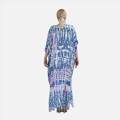 Closeout Deal V-Neck Tie-Dye Stripe Pattern-Mid-Sleeve Dress