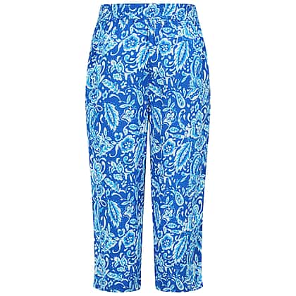 Step into effortless summer style with the Emreco floral paisley print lightweight crinkle wide leg culottes. Designed with a striking mix of blue and white tones, the all-over paisley pattern brings a fresh, feminine feel. The lightweight crinkle fabric is breathable and easy to wear, making these culottes a great choice for warm days or holidays. With a flattering wide-leg cut and elasticated waistband, they promise comfort without compromising on style. Pair them with a plain top and sandals for a relaxed daytime look or dress them up with accessories for evenings out.