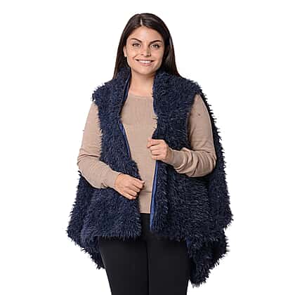 Faux Fur Sleeveless Vest (Size 65x65 Cm) - Navy Blue