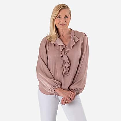Solid Flair Frill Long Sleeves Top (Size 18) - Dusty Pink